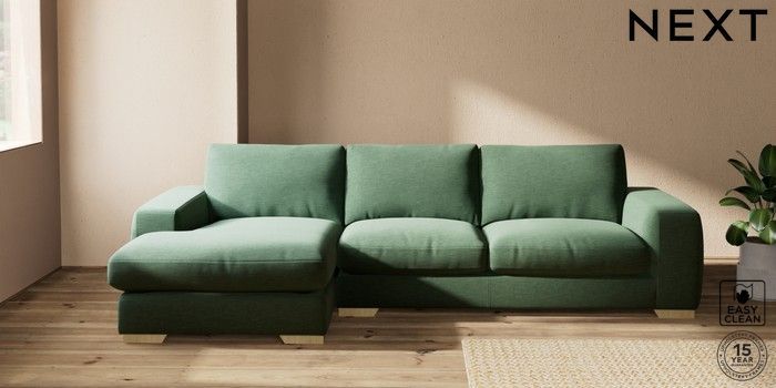 7.2.10 Houghton Deep Relaxed Sit Sofa Chaise Bed - Left Hand Fine Chenille Easy Clean Mid Khaki Green Large Square Angle - Light | Made Click here to use our website with more accessibility support, for example screen readers