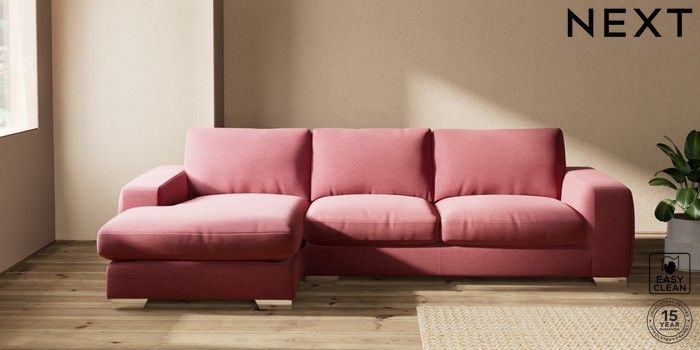 7.2.10 Houghton Deep Relaxed Sit Sofa Chaise Bed - Left Hand Fine Chenille Easy Clean Mid Pink Large Square Angle - Chrome Metal | Made Click here to use our website with more accessibility support, for example screen readers