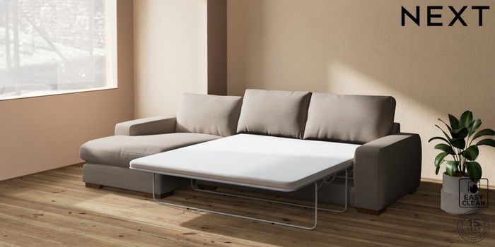 The Houghton sofa is chunky, stylish, and incredibly comfortable, boasting a contemporary design with bold square arms and generous, deep seats perfect for snuggling. It features our "Relaxed Sit" cushions, specially developed with high-density foam pieces in channels and wrapped in fibre. This innovative design gives you excellent comfort and a wonderfully plump, relaxed look. These cushions offer a softer sit and will stay looking their best with a little regular plumping and turning. They're also reversible for extra convenience. This range has a sofa bed. Sofa beds are a practical and comfortable addition to any home, big or small. Our sofa beds are pull-out beds containing a separate 6cm occasional foam mattress. This pull-out mechanism is concealed underneath the main cushions. We have sofa beds across multiple ranges, but they all are 120cm in width and 180cm in length, so we suggest a double duvet and a double flat sheet to dress your sofa bed.
