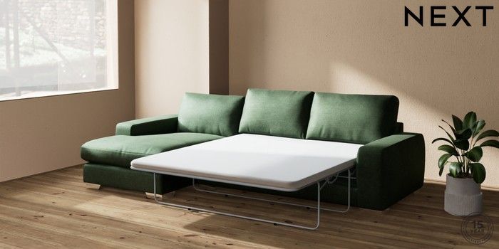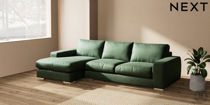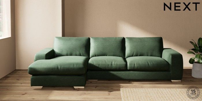 7.2.10 Houghton Deep Relaxed Sit Sofa Chaise Bed - Left Hand Luxe Chenille Dark Green Large Square Angle - Chrome Metal | Made Click here to use our website with more accessibility support, for example screen readers