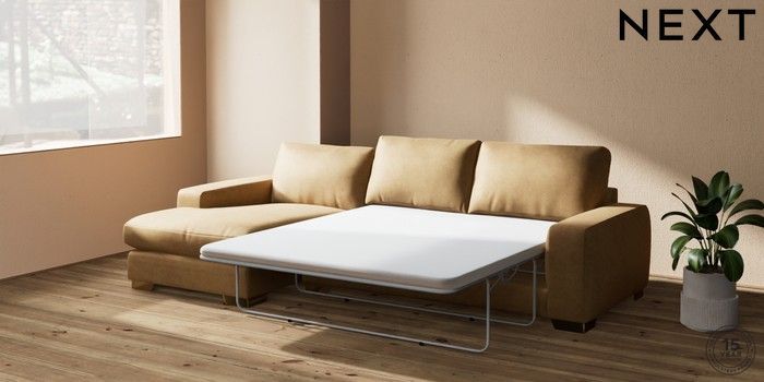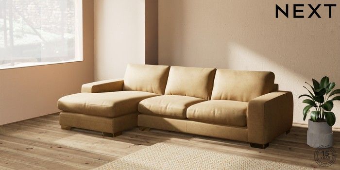 7.2.10 Houghton Deep Relaxed Sit Sofa Chaise Bed - Left Hand Luxe Chenille Honey Yellow Large Square Angle - Brushed Brass | Made Click here to use our website with more accessibility support, for example screen readers