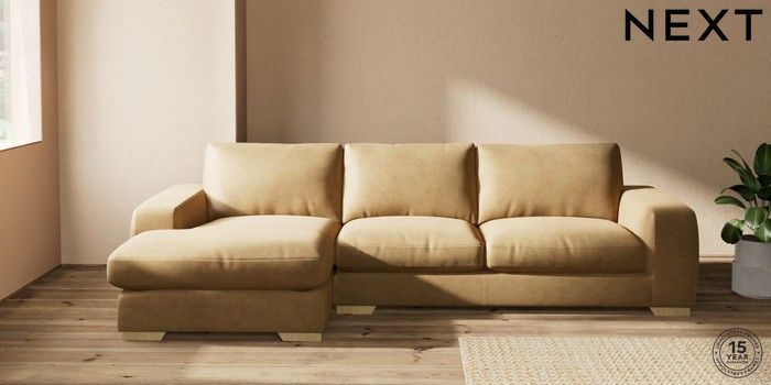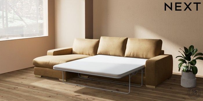 7.2.10 Houghton Deep Relaxed Sit Sofa Chaise Bed - Left Hand Luxe Chenille Honey Yellow Large Square Angle - Light | Made Click here to use our website with more accessibility support, for example screen readers