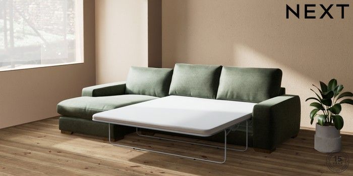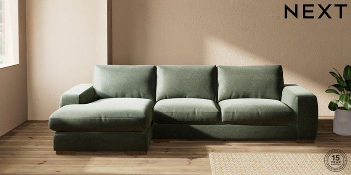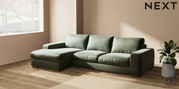7.2.10 Houghton Deep Relaxed Sit Sofa Chaise Bed - Left Hand Luxe Chenille Mid Green Large Square Angle - Mid | Made Click here to use our website with more accessibility support, for example screen readers
