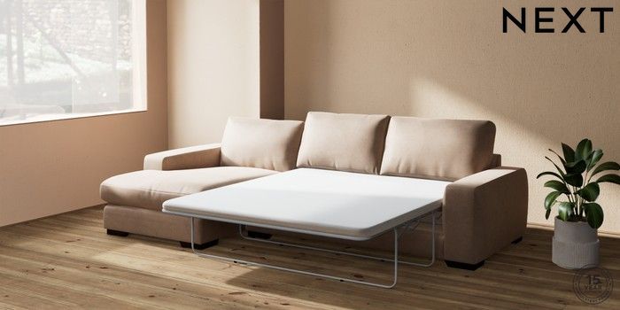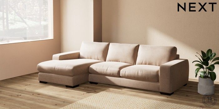 7.2.10 Houghton Deep Relaxed Sit Sofa Chaise Bed - Left Hand Luxe Chenille Mid Natural Large Square Angle - Dark | Made Click here to use our website with more accessibility support, for example screen readers