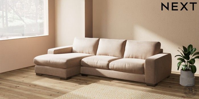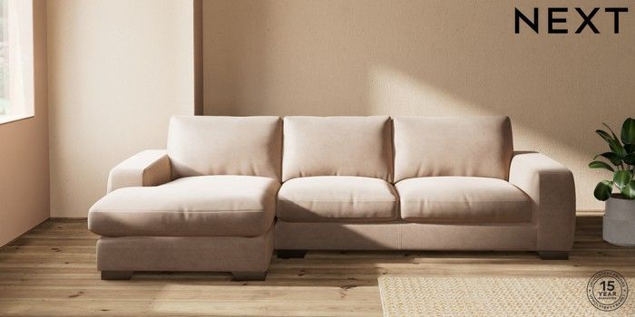 7.2.10 Houghton Deep Relaxed Sit Sofa Chaise Bed - Left Hand Luxe Chenille Mid Natural Large Square Angle - Gunmetal | Made Click here to use our website with more accessibility support, for example screen readers