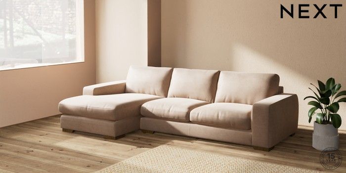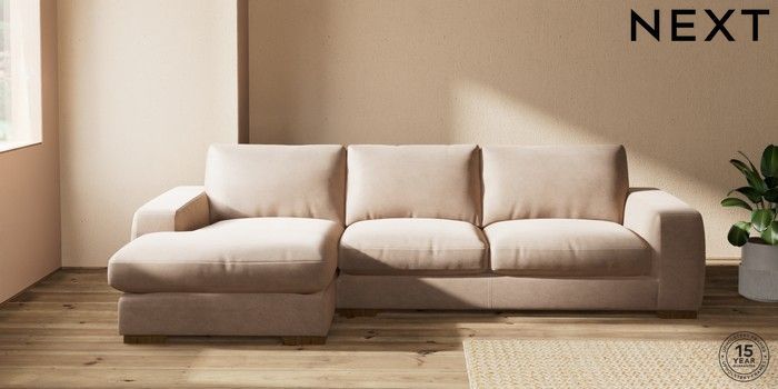7.2.10 Houghton Deep Relaxed Sit Sofa Chaise Bed - Left Hand Luxe Chenille Mid Natural Large Square Angle - Mid | Made Click here to use our website with more accessibility support, for example screen readers