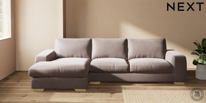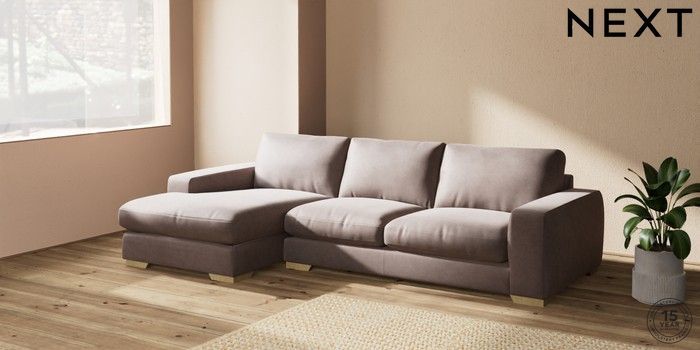7.2.10 Houghton Deep Relaxed Sit Sofa Chaise Bed - Left Hand Luxe Chenille Mink Brown Large Square Angle - Light | Made Click here to use our website with more accessibility support, for example screen readers