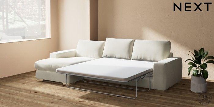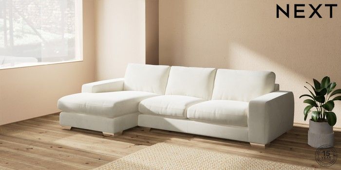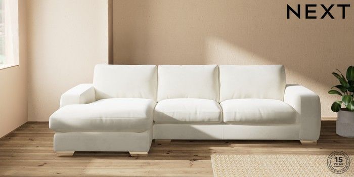 7.2.10 Houghton Deep Relaxed Sit Sofa Chaise Bed - Left Hand Luxe Chenille Oyster Large Square Angle - Chrome Metal | Made Click here to use our website with more accessibility support, for example screen readers