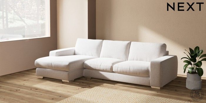 7.2.10 Houghton Deep Relaxed Sit Sofa Chaise Bed - Left Hand Multi Weave Oyster Large Square Angle - Chrome Metal | Made Click here to use our website with more accessibility support, for example screen readers