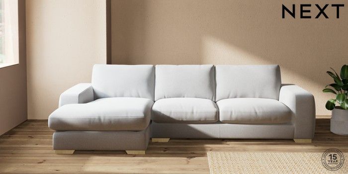 7.2.10 Houghton Deep Relaxed Sit Sofa Chaise Bed - Left Hand Natural Mix Light Grey Large Square Angle - Light | Made Click here to use our website with more accessibility support, for example screen readers