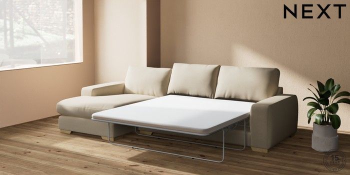 7.2.10 Houghton Deep Relaxed Sit Sofa Chaise Bed - Left Hand Natural Mix Light Natural Large Square Angle - Light | Made Click here to use our website with more accessibility support, for example screen readers