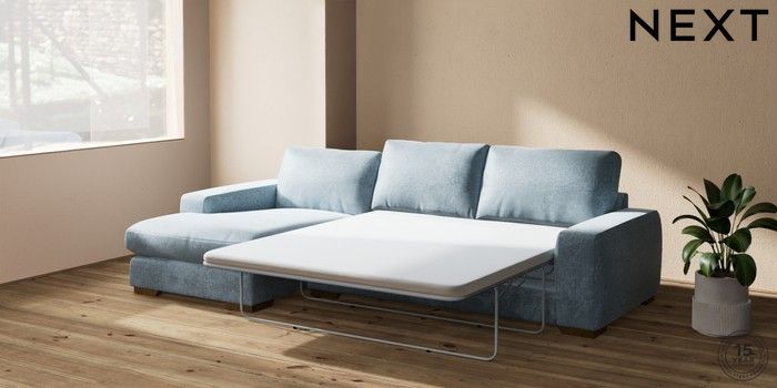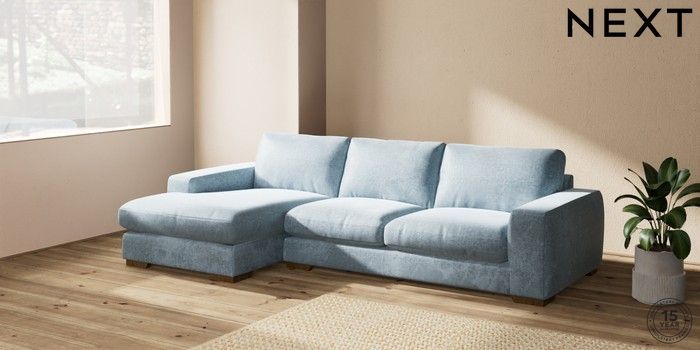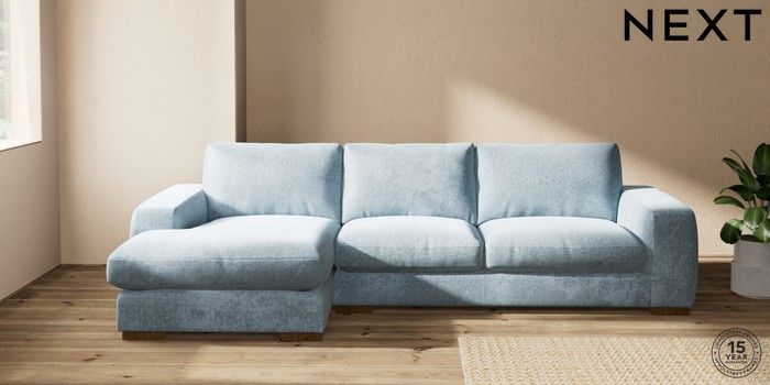 7.2.10 Houghton Deep Relaxed Sit Sofa Chaise Bed - Left Hand Plush Chenille Light Blue Large Square Angle - Mid | Made Click here to use our website with more accessibility support, for example screen readers