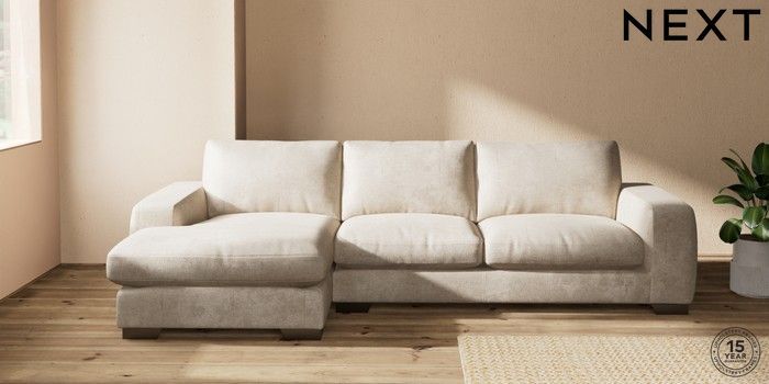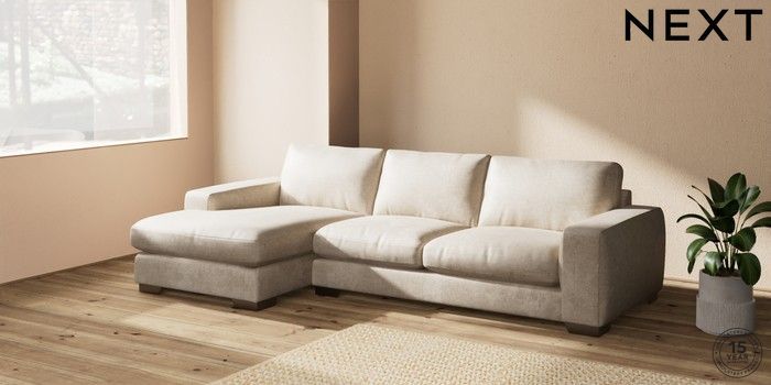 7.2.10 Houghton Deep Relaxed Sit Sofa Chaise Bed - Left Hand Plush Chenille Light Natural Large Square Angle - Gunmetal | Made Click here to use our website with more accessibility support, for example screen readers