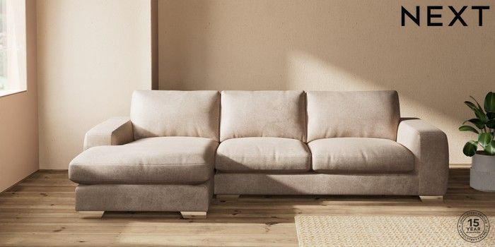 7.2.10 Houghton Deep Relaxed Sit Sofa Chaise Bed - Left Hand Plush Chenille Mid Natural Large Square Angle - Chrome Metal | Made Click here to use our website with more accessibility support, for example screen readers