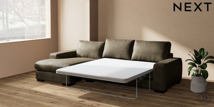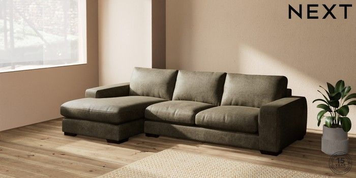 7.2.10 Houghton Deep Relaxed Sit Sofa Chaise Bed - Left Hand Plush Chenille Moss Green Large Square Angle - Dark | Made Click here to use our website with more accessibility support, for example screen readers