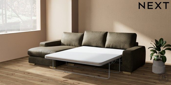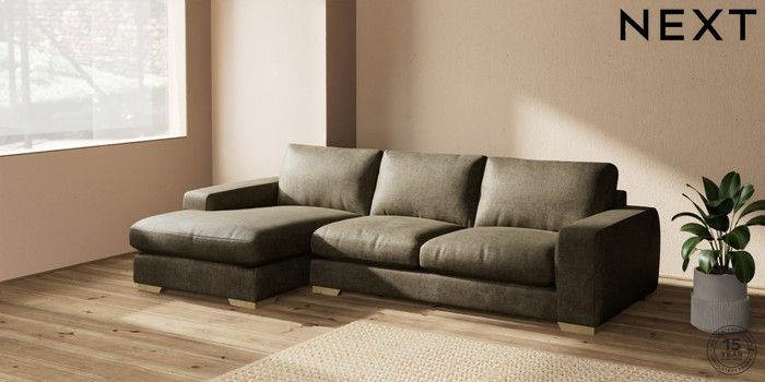 7.2.10 Houghton Deep Relaxed Sit Sofa Chaise Bed - Left Hand Plush Chenille Moss Green Large Square Angle - Light | Made Click here to use our website with more accessibility support, for example screen readers