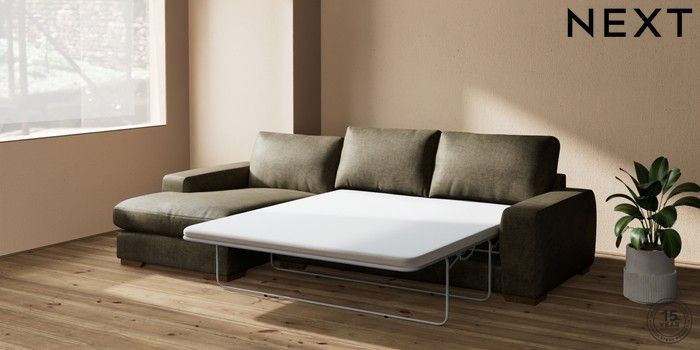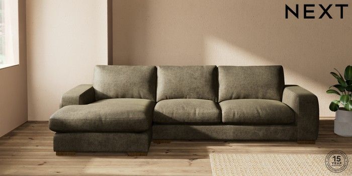 7.2.10 Houghton Deep Relaxed Sit Sofa Chaise Bed - Left Hand Plush Chenille Moss Green Large Square Angle - Mid | Made Click here to use our website with more accessibility support, for example screen readers