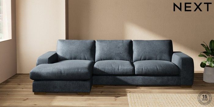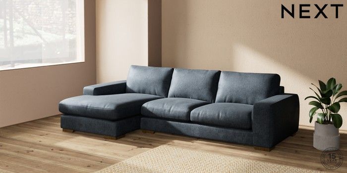 7.2.10 Houghton Deep Relaxed Sit Sofa Chaise Bed - Left Hand Plush Chenille Slate Blue Large Square Angle - Mid | Made Click here to use our website with more accessibility support, for example screen readers