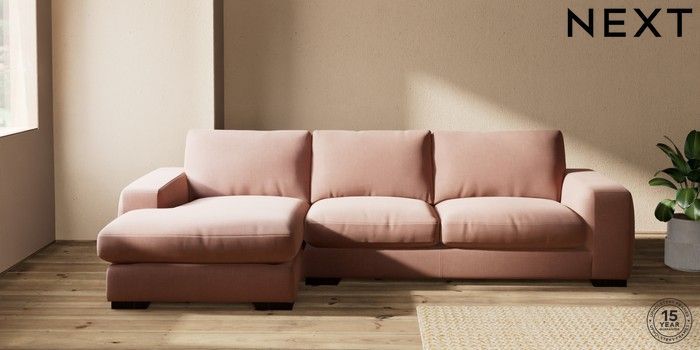 7.2.10 Houghton Deep Relaxed Sit Sofa Chaise Bed - Left Hand Relaxed Linen Look Light Rust Brown Large Square Angle - Dark | Made Click here to use our website with more accessibility support, for example screen readers