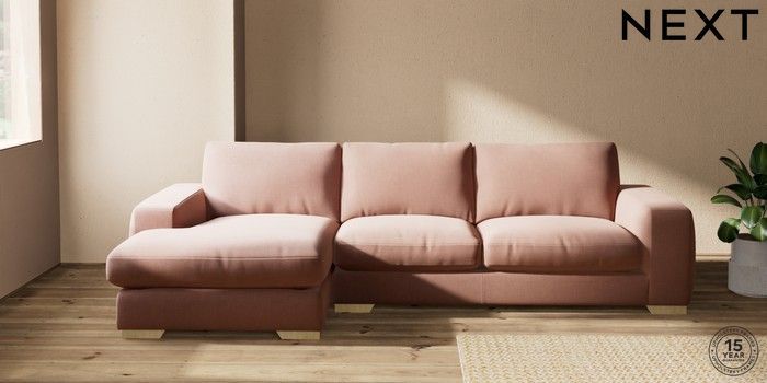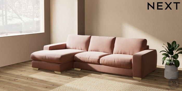 7.2.10 Houghton Deep Relaxed Sit Sofa Chaise Bed - Left Hand Relaxed Linen Look Light Rust Brown Large Square Angle - Light | Made Click here to use our website with more accessibility support, for example screen readers