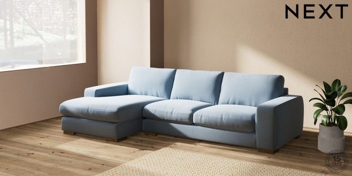 7.2.10 Houghton Deep Relaxed Sit Sofa Chaise Bed - Left Hand Relaxed Linen Look Mid Blue Large Square Angle - Mid | Made Click here to use our website with more accessibility support, for example screen readers