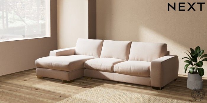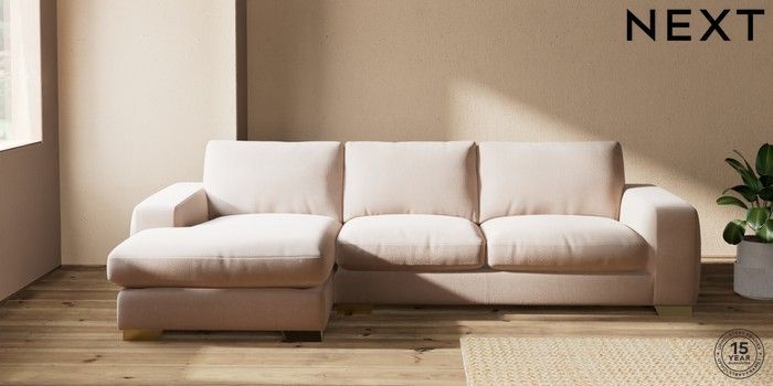7.2.10 Houghton Deep Relaxed Sit Sofa Chaise Bed - Left Hand Relaxed Linen Look Mid Natural Large Square Angle - Brushed Brass | Made Click here to use our website with more accessibility support, for example screen readers