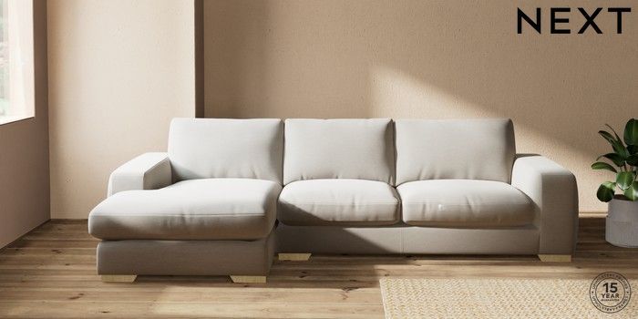 7.2.10 Houghton Deep Relaxed Sit Sofa Chaise Bed - Left Hand Ripple Chenille Light Natural Large Square Angle - Light | Made Click here to use our website with more accessibility support, for example screen readers