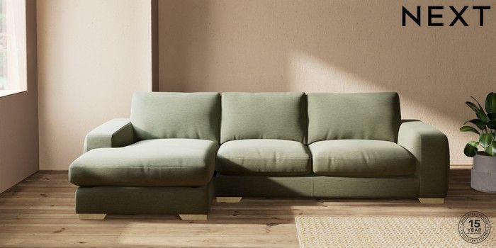 7.2.10 Houghton Deep Relaxed Sit Sofa Chaise Bed - Left Hand Ripple Chenille Mid Moss Green Large Square Angle - Light | Made Click here to use our website with more accessibility support, for example screen readers