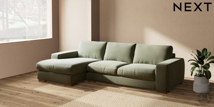 7.2.10 Houghton Deep Relaxed Sit Sofa Chaise Bed - Left Hand Ripple Chenille Mid Moss Green Large Square Angle - Mid | Made Click here to use our website with more accessibility support, for example screen readers