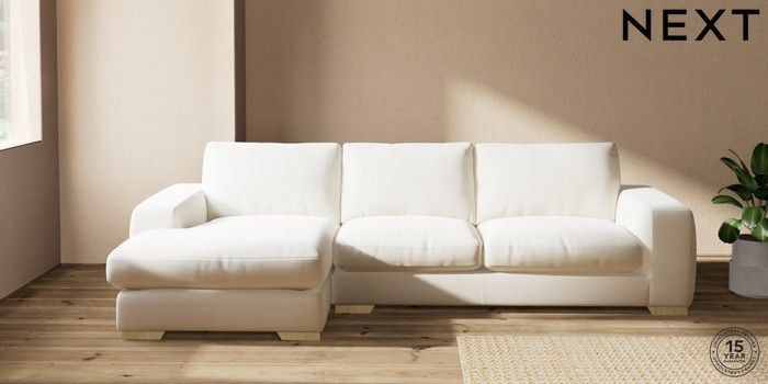 7.2.10 Houghton Deep Relaxed Sit Sofa Chaise Bed - Left Hand Ripple Chenille Oyster Large Square Angle - Light | Made Click here to use our website with more accessibility support, for example screen readers