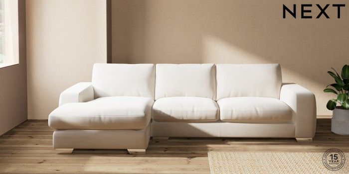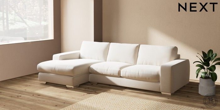 7.2.10 Houghton Deep Relaxed Sit Sofa Chaise Bed - Left Hand Studio Chenille Oyster Large Square Angle - Chrome Metal | Made Click here to use our website with more accessibility support, for example screen readers