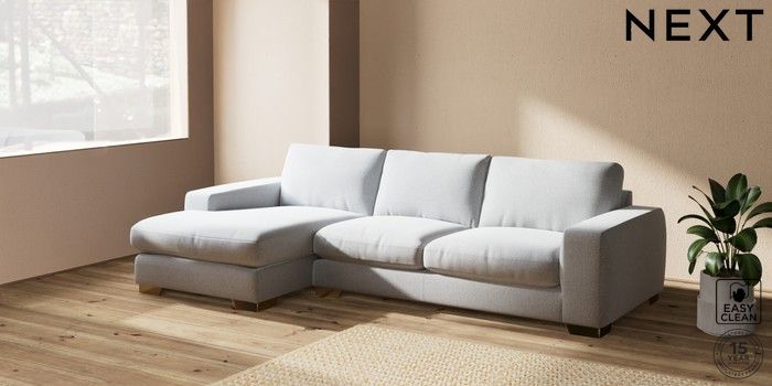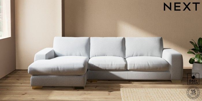 7.2.10 Houghton Deep Relaxed Sit Sofa Chaise Bed - Left Hand Tweedy Blend Easy Clean Light Silver Grey Large Square Angle - Brushed Brass | Made Click here to use our website with more accessibility support, for example screen readers