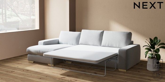 7.2.10 Houghton Deep Relaxed Sit Sofa Chaise Bed - Left Hand Tweedy Blend Easy Clean Light Silver Grey Large Square Angle - Light | Made Click here to use our website with more accessibility support, for example screen readers