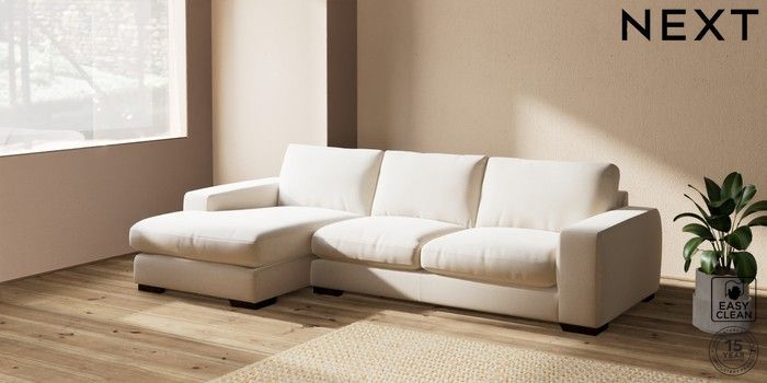 7.2.10 Houghton Deep Relaxed Sit Sofa Chaise Bed - Left Hand Tweedy Blend Easy Clean Oyster Large Square Angle - Dark | Made Click here to use our website with more accessibility support, for example screen readers