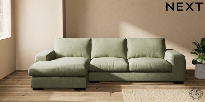 7.2.10 Houghton Deep Relaxed Sit Sofa Chaise Bed - Left Hand Tweedy Chenille Mid Moss Green Large Square Angle - Dark | Made Click here to use our website with more accessibility support, for example screen readers