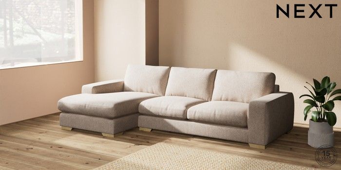 7.2.10 Houghton Deep Relaxed Sit Sofa Chaise Bed - Left Hand Tweedy Chenille Mid Natural Large Square Angle - Light | Made Click here to use our website with more accessibility support, for example screen readers