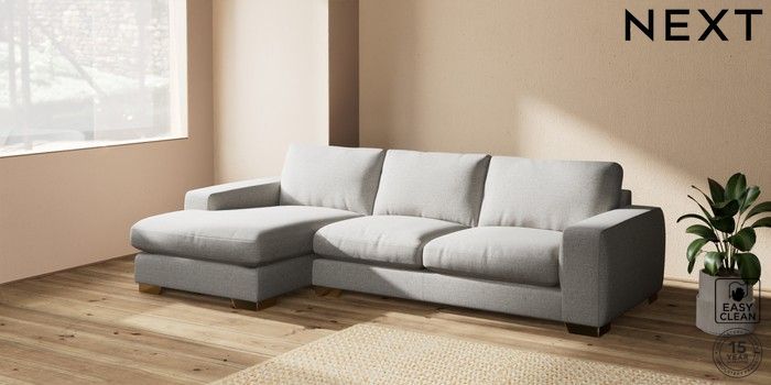 7.2.10 Houghton Deep Relaxed Sit Sofa Chaise Bed - Left Hand Woven Chenille Easy Clean Light Grey Large Square Angle - Brushed Brass | Made Click here to use our website with more accessibility support, for example screen readers