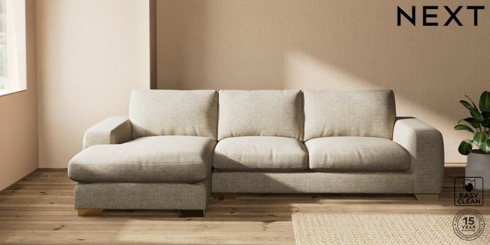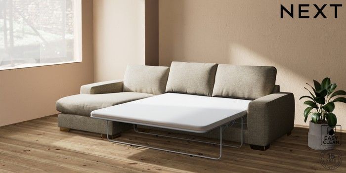 7.2.10 Houghton Deep Relaxed Sit Sofa Chaise Bed - Left Hand Woven Chenille Easy Clean Mid Natural Large Square Angle - Brushed Brass | Made Click here to use our website with more accessibility support, for example screen readers