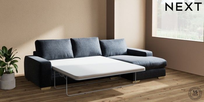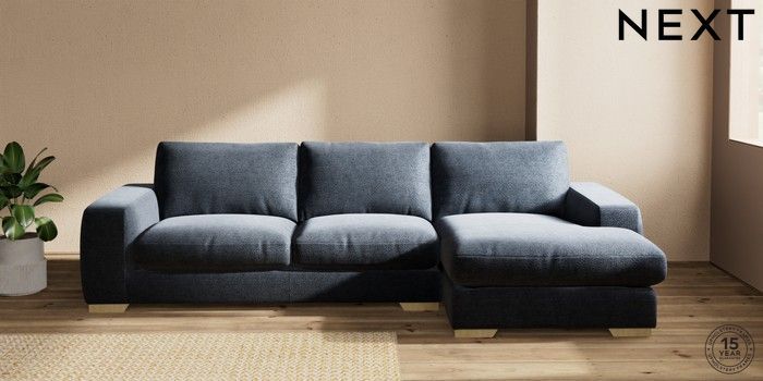 7.2.10 Houghton Deep Relaxed Sit Sofa Chaise Bed - Right Hand Boucle Chenille Dark Slate Blue Large Square Angle - Light | Made Click here to use our website with more accessibility support, for example screen readers