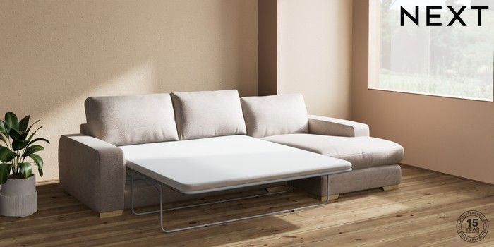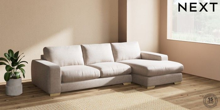 7.2.10 Houghton Deep Relaxed Sit Sofa Chaise Bed - Right Hand Boucle Chenille Light Natural Large Square Angle - Light | Made Click here to use our website with more accessibility support, for example screen readers