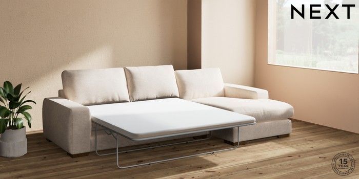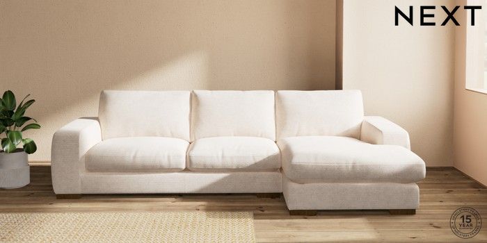 7.2.10 Houghton Deep Relaxed Sit Sofa Chaise Bed - Right Hand Boucle Chenille Oyster Large Square Angle - Mid | Made Click here to use our website with more accessibility support, for example screen readers