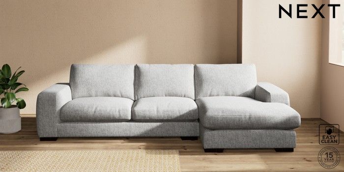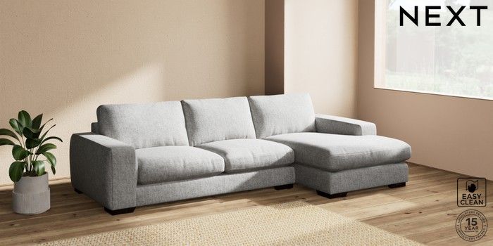 7.2.10 Houghton Deep Relaxed Sit Sofa Chaise Bed - Right Hand Chunky Boucle Easy Clean Light Grey Large Square Angle - Dark | Made Click here to use our website with more accessibility support, for example screen readers