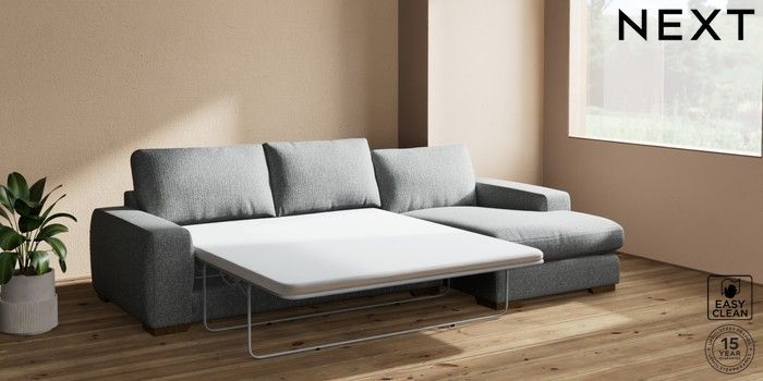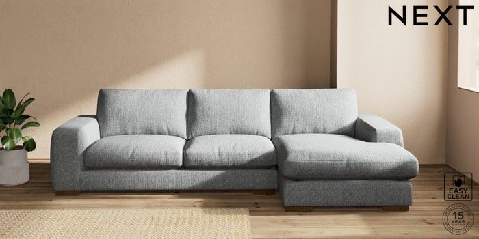 7.2.10 Houghton Deep Relaxed Sit Sofa Chaise Bed - Right Hand Chunky Boucle Easy Clean Mid Grey Large Square Angle - Mid | Made Click here to use our website with more accessibility support, for example screen readers