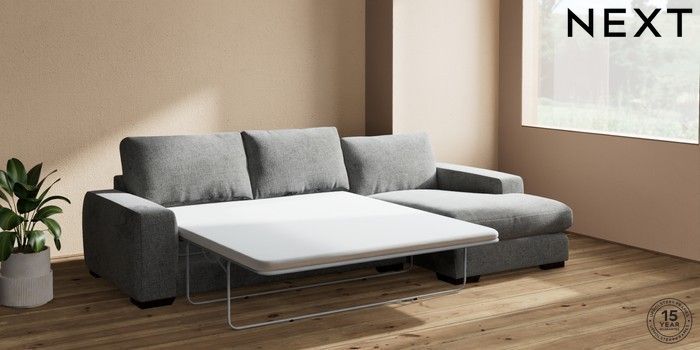 7.2.10 Houghton Deep Relaxed Sit Sofa Chaise Bed - Right Hand Chunky Chenille Dark Grey Large Square Angle - Dark | Made Click here to use our website with more accessibility support, for example screen readers