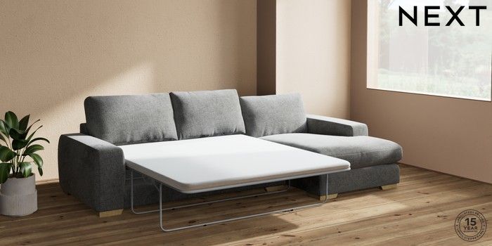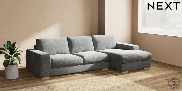 7.2.10 Houghton Deep Relaxed Sit Sofa Chaise Bed - Right Hand Chunky Chenille Dark Grey Large Square Angle - Light | Made Click here to use our website with more accessibility support, for example screen readers