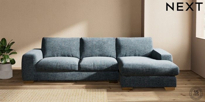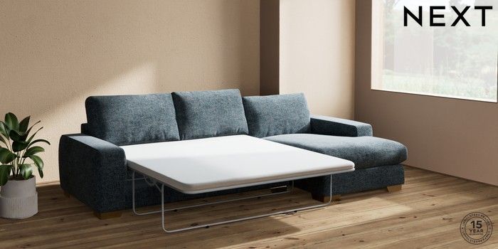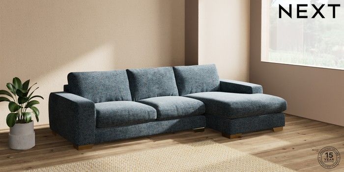 7.2.10 Houghton Deep Relaxed Sit Sofa Chaise Bed - Right Hand Chunky Chenille Dark Navy Blue Large Square Angle - Brushed Brass | Made Click here to use our website with more accessibility support, for example screen readers