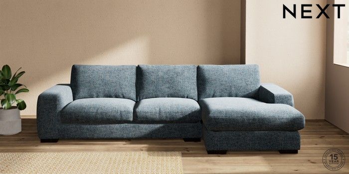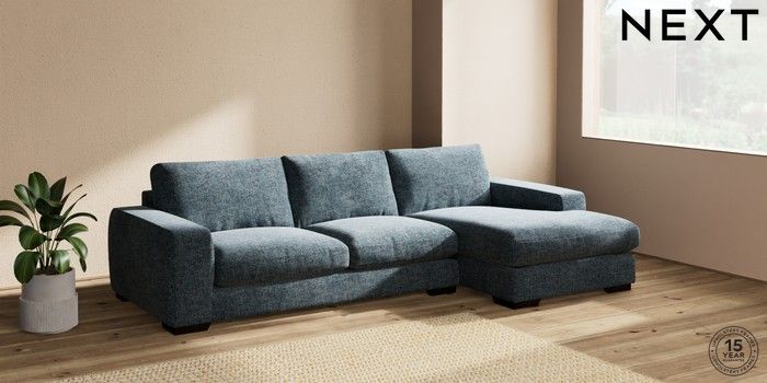 7.2.10 Houghton Deep Relaxed Sit Sofa Chaise Bed - Right Hand Chunky Chenille Dark Navy Blue Large Square Angle - Dark | Made Click here to use our website with more accessibility support, for example screen readers