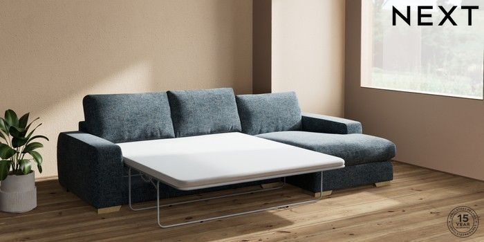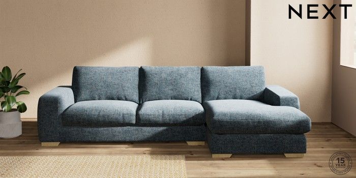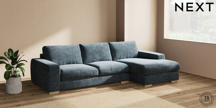 7.2.10 Houghton Deep Relaxed Sit Sofa Chaise Bed - Right Hand Chunky Chenille Dark Navy Blue Large Square Angle - Light | Made Click here to use our website with more accessibility support, for example screen readers