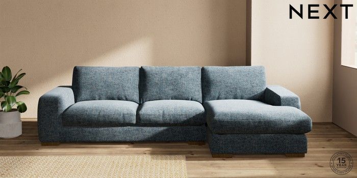 7.2.10 Houghton Deep Relaxed Sit Sofa Chaise Bed - Right Hand Chunky Chenille Dark Navy Blue Large Square Angle - Mid | Made Click here to use our website with more accessibility support, for example screen readers