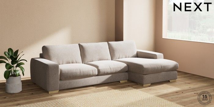 7.2.10 Houghton Deep Relaxed Sit Sofa Chaise Bed - Right Hand Chunky Chenille Light Dove Large Square Angle - Light | Made Click here to use our website with more accessibility support, for example screen readers